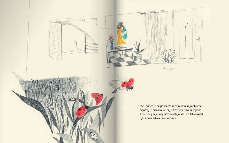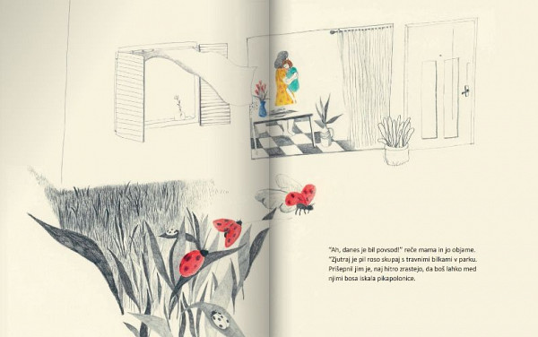 - Besedilo slikanice je kratko, a ima neverjetno moč: pogovor med deklico in njeno mamo nas odene v toplo misel, da so naši bližnji, ki jih fizično ni več, vedno prisotni v nas samih, in čeprav jih ne moremo videti, jih lahko čutimo.
