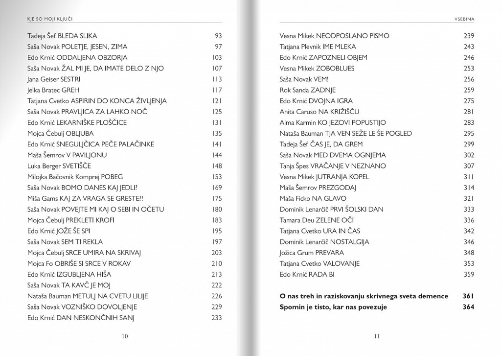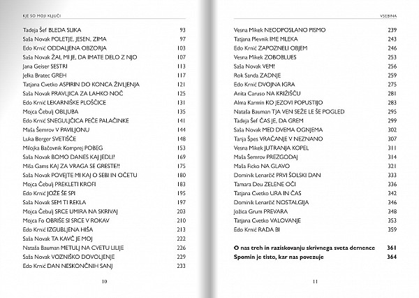Pospremljene so s strokovnimi komentarji dr. Zdenke Čebašek Travnik, ki je kot specialistka psihiatrije in sistemska družinska terapevtka odlična poznavalka odnosov v družinah, kjer živijo osebe z demenco, ter spremno besedo prof. dr. Zvezdana Pirtoška, ki je vodilni slovenski strokovnjak na področju demence.