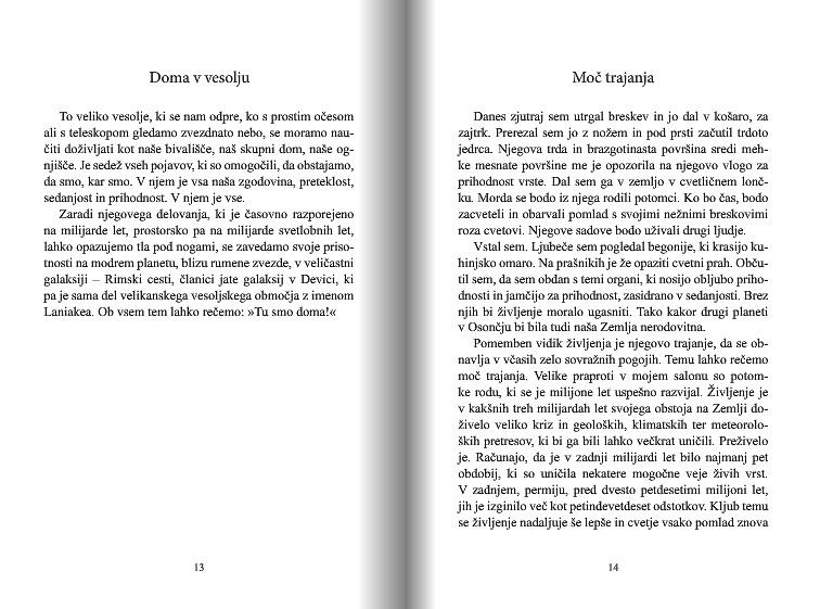 Povedati nameravam, kaj so mi dale izkušnje življenja, poklic astrofizika, ter jih posredovati tistim, ki mi izkazujejo čast, da se zanimajo za moja intimna prepričanja, torej tista, ki so najpomembnejša, ko moramo o čem presoditi in se konkretno odločiti. Vendar na teh straneh ni nič dokončnega. Vse je začasno in je mogoče obnoviti – kadar koli.