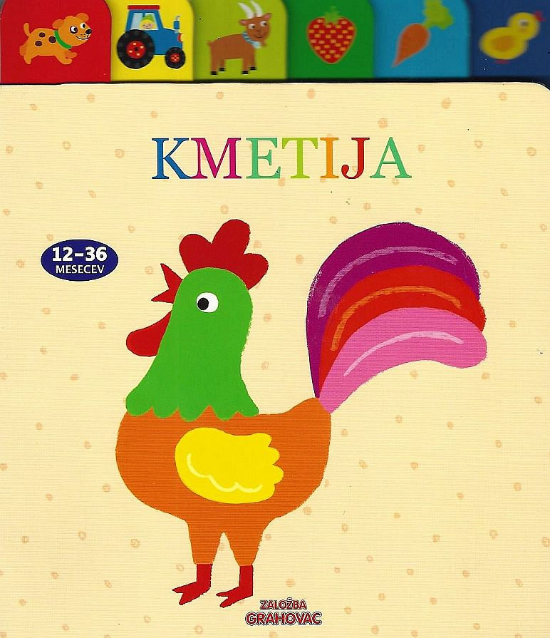 Kmet, traktor, poni, por … S to poučno slikovno knjigo, bogato z barvnimi ilustracijami, bo vaš otrok na zabaven način obogatil svoj besedni zaklad. S pomočjo zavihkov bo vaš malček hitro našel svojo najljubšo stran. Za ure in ure užitkov ob gledanju in branju. Knjiga je na voljo v zbirki Račke (12-36 mesecev).Kartonka z zavihki in zaobljenimi robovi, velikost: 17 x 14,5 cm, 12 strani.