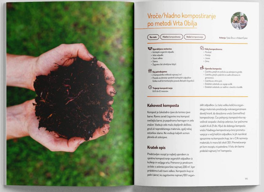 Namen kompostiranja je, da pridobimo kvaliteten kompost kot univerzalno gnojilo in mikrobiološko poživilo za naša tla in rastline. Bolj kot hranila v kompostu, nas zanima tisti živi (mikrobiološki) del komposta, ki oživlja tudi najbolj degradirana tla. Knjiga Kompost? Ja, prosim predstavlja zbrano osnovno znanje, ki sva ga avtorja Robert Špiler in Tjaša Štruc z izobraževanjem, raziskovanjem, predvsem pa z intenzivno prakso pridobila v (do zdaj) sedmih sezonah vrtnarjenja in kompostiranja. Knjiga je tako namenjena vrtnarjem. V njej je zbranih 20 praktičnih receptov za kompostiranje.