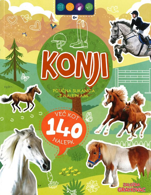Dobrodošli v zanimivem svetu konj! Malčki bodo izvedeli veliko zanimivosti o njihovem življenju in kje jih lahko srečajo. Ob branju bodo dopolnjevali ilustracije z nalepkami.