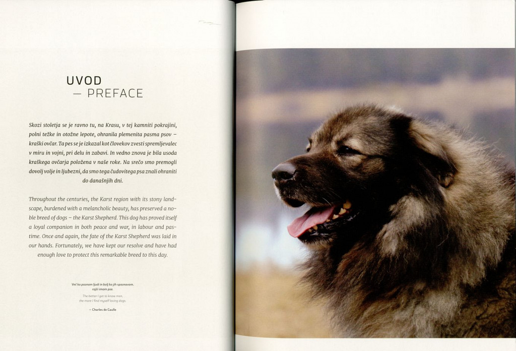 Besedilo je pripovedno, z zanimivimi primeri ter poudarkom na številnih fotografijah ter umetniških delih, ki prikazujejo lepoto Krasa in sobivanje kraškega ovčarja v tej edinstveni pokrajini. Čudovit portret, namenjen ne le strokovnjakom s področja kinologije, temveč tudi ljubiteljem kraških ovčarjev ter tistim, ki bi želeli to edino slovensko pasmo podrobneje spoznati. Knjiga bo prevedena v angleški jezik in tako razumljiva zanimiva tudi za tuje obiskovalce naše dežele.