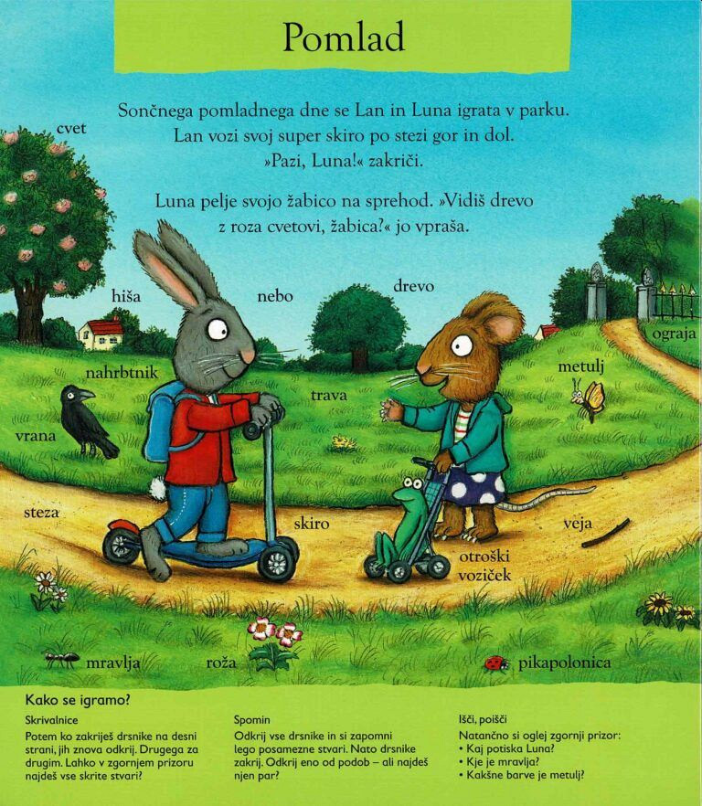 Z zabavnimi igrami in živahnimi prizori je ta knjiga namenjena urjenju spomina, bogatenju besednega zaklada in spodbujanju bralnih navad.