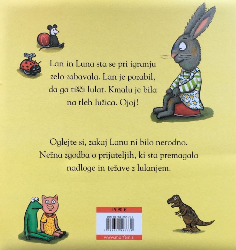 Axel Scheffler nas ponovno vabi v družbo Lana in Lune, ki sta se pri igranju zelo zabavala. Lan je pozabil, da ga tišči lulat. Kmalu je bila na tleh lužica. Ojoj!Oglejte si, zakaj Lanu ni bilo nerodno. Nežna zgodba o prijateljih, ki sta premagala nadloge in težave z lulanjem. Preberite več
