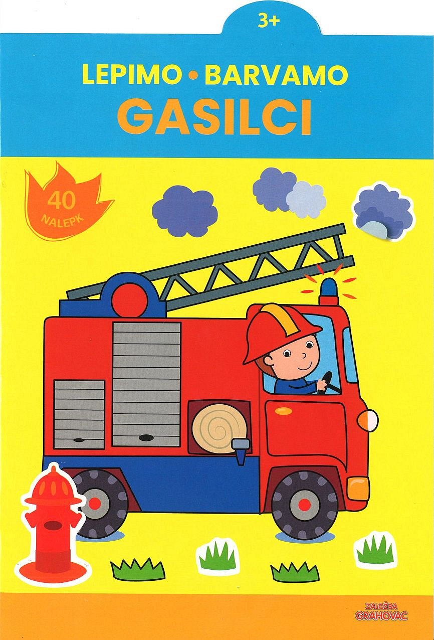 V zanimivi knjigi z nalepkami in pobarvankami spoznaj vznemirljivo življenje gasilcev. Na pravo mesto nalepi gasilsko vozilo, plamene in brizgalno cev ter pobarvaj risbice. Hitro pogasimo požar!Mehka vezava, velikost: 27 x 19,5 cm, 16 strani + 2 str. nalepk.