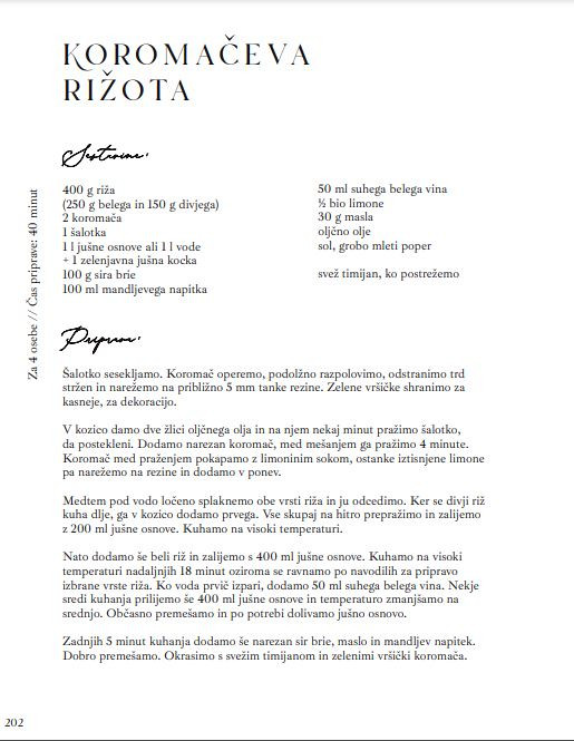 In ob jedeh v tej knjigi se nam bodo spočile oči in duša. V vseh štirih letnih časih bomo združili najboljše in najlepše, kar najdemo na vrtu in na njivi in ustvarili edinstvene jedi: od pomladne pisane fokače, poletne razkošne Pavlove do jesenske slane galete z vrtnicami iz gomoljnic in zimskega potičnega venčka. S Kristininimi recepti bo naša miza zablestela.