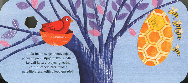 Iskriva zgodba o življenju čebelic. Zgodbe v pisanih barvah bodo gotovo zabavale majhne otroke. Živopisane kartonke otrokom ponujajo pravo zabavo. Skozi luknje lahko gledajo ali vanje vtikajo prste, kar otroškemu raziskovanju dodaja novo razsežnost. Preberite več