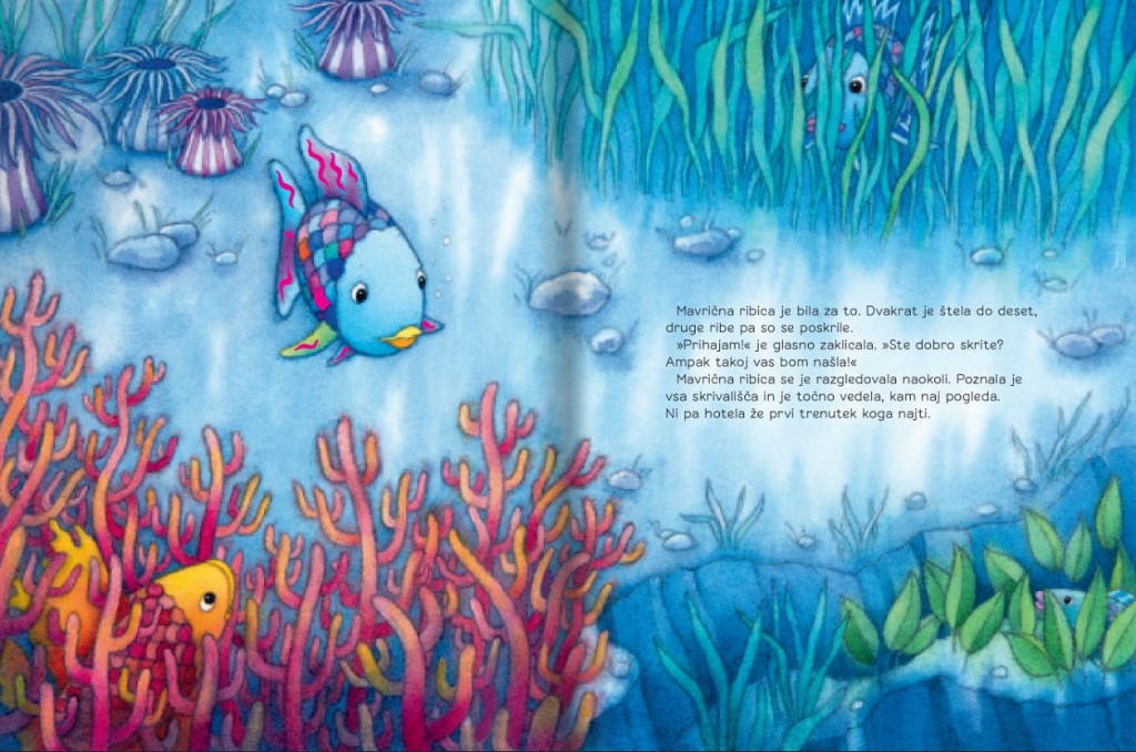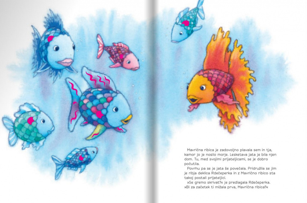 Slikanica Marcusa Pfisterja Mavricna ribica je izšla leta 1992. Kmalu je postala svetovna uspešnica; prevedena je v več kot šestdeset jezikov, natisnjenih je več kot 30 milijonov izvodov. V imenitnem prevodu Polonce Kovač je v Sloveniji zaživela že leta 1993. Tudi nova slikanica Mavrična ribica se uči izgubljati vabi otroke na poučno potovanje med morska bitja.