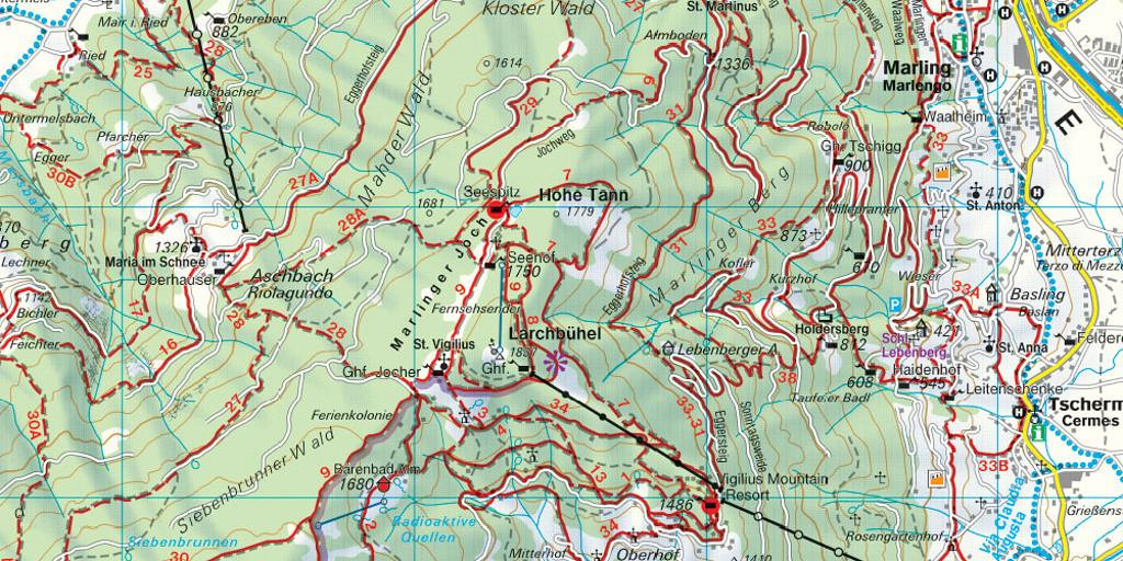 POSEBNE POHODNIŠKE TEMATSKE POTI: Merano gorska cesta, Via Alpina, Grande Giro del Fero Cavallo, Via Claudia Augusta, Passegiata Tappeiner, namakalni kanali, Sentieri delle rogge.