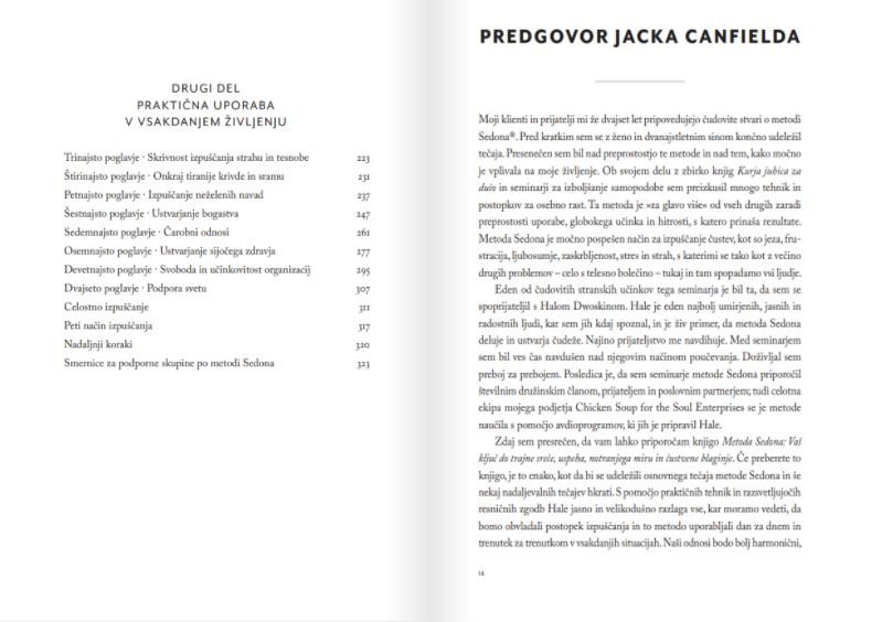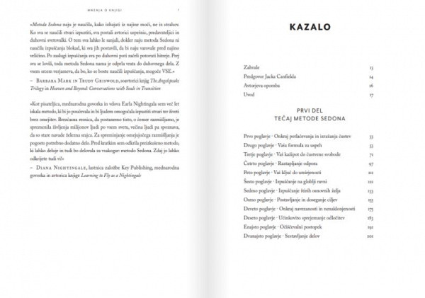 »Metoda Sedona je učinkovito orodje, če se hočemo znebiti miselnosti žrtve. Namesto da dajemo svojo moč drugim, nas Hale Dwoskin spodbuja, naj se zazremo vase in prevzamemo nadzor nad svojimi življenjskimi izkušnjami. To je mogočno!« - Dr. Susan Jeffers, avtorica knjig Čar samozavesti in Embracing Uncertainty