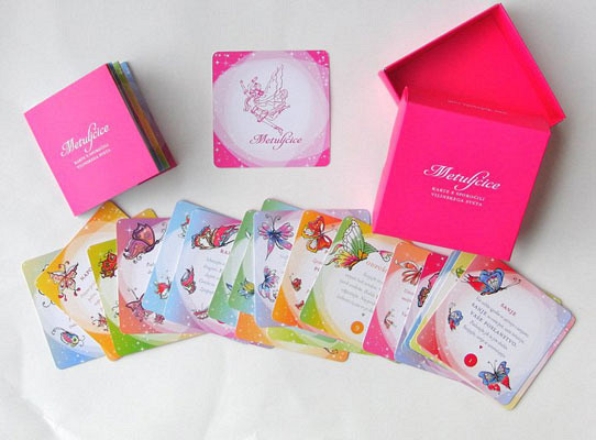 V kompletu je 23 kart s priloženo knjižico s širšo razlago karte.Komplet kart s knjižico je pakiran v škatlico, ta pa je v mini darilni vrečki iz tila.