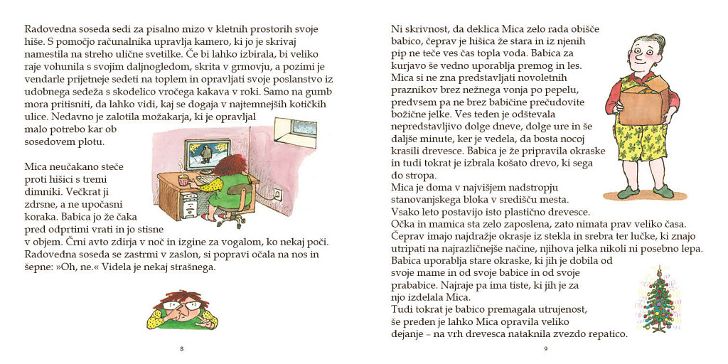 Mica še kako rada obišče babico v hišici z rumenimi strežniki, čeprav tam ni televizije. Pri babici je drugače kot doma, pred umivalnikom v kopalnici se sme ličiti, dokler se ne prestraši lastne podobe v zrcalu. Preberite več