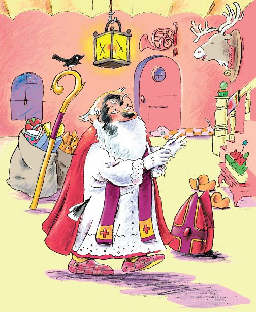 Miklavž je že začel s pripravami na svoje vsakoletno obdarovanje. Medtem ko so piškoti v pečici, poišče svojo slavnostno opravo in ugotovi, da mora nujno zloščiti še čeveljce.