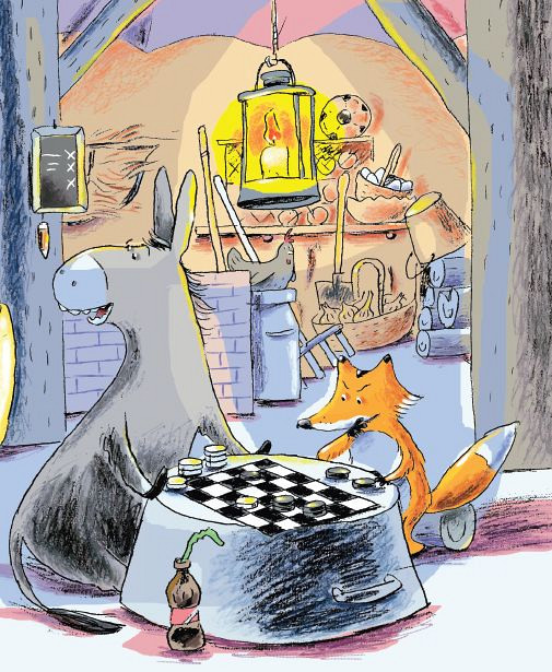 A glej ga zlomka, to ga tako zaposli, da pozabi na dobrote v pečici. Ne samo da je zažgal piškote, izginili so tudi čeveljci. Brez njih pa res ne more na pot. K sreči ima osel genialno idejo.