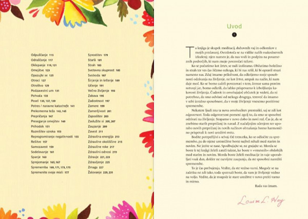 LOUISE HAY nedvomno lahko prištevamo med začetnike gibanj za samopomoč. S svojo neomajno ljubeznijo in vero v pozitiven pristop k življenju, je pomagala neštetim ljudem razkrivati in izkoriščati potencial lastnih ustvarjalnih moči za osebno rast in samozdravljenje.