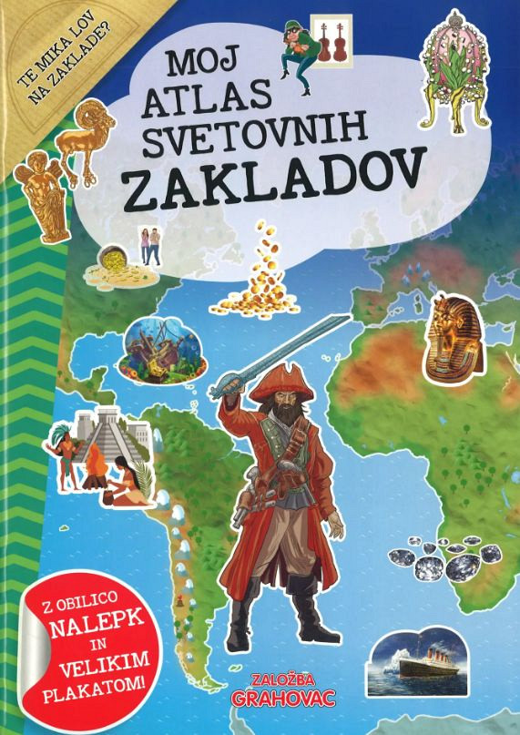 Ta atlas, poln nepričakovanih odkritij, skrivnostnih izginotij, ilustriranih zemljevidov, čudovitih fotografij in umetniških del, ti predstavlja številne izgubljene, spet najdene in druge zaklade na vseh celinah. Dopolnjuj knjižne strani in plakat s priloženimi nalepkami. Preberite več