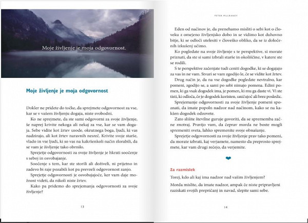 Ta knjiga je povabilo, da sprejmete odgovornost za svoje življenje in pustite drugim, da sprejmejo odgovornost za svoje. Knjige ni treba brati stran za stranjo in vso naenkrat. Spoznanja lahko berete po poljubnem vrstnem redu.