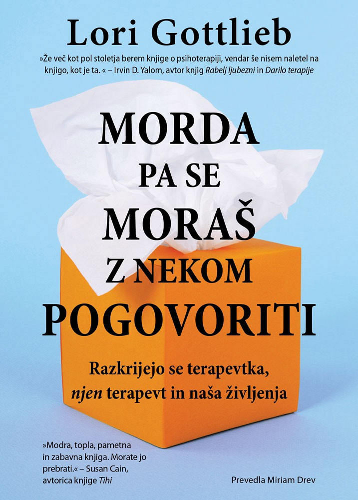 Razkrijejo se terapevtka, njen terapevt in naša življenja. Knjiga 'Morda pa se moraš z nekom pogovoriti' je peto delo Lori Gottlieb, ugledne ameriške psihoterapevtke in avtorice številnih člankov. Imajo jo za eno najboljših psihoterapevtskih knjig zadnjega časa, ki je strokovna po svoji osnovi, vendar dovolj priljudna, da jo lahko bere tudi zavzeti bralec.