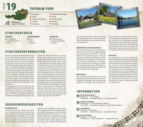 Motoristična karta - Avstrija predstavlja 50 najlepših izletov po vseh zveznih deželah in značilnih krajinskih tipih: od ravnice pri alpskem vznožju, do visokih Alpskih vrhov, ki pritegnejo številne motoriste s svojimi serpentinastimi gorskimi cestami. Poleg informacij o poti, kot so načrtovanje ter cestnine, so prikazane tudi pomembne turistične znamenitosti ob poti.
