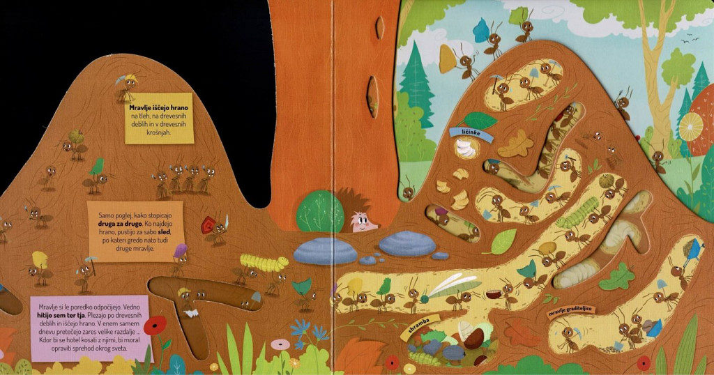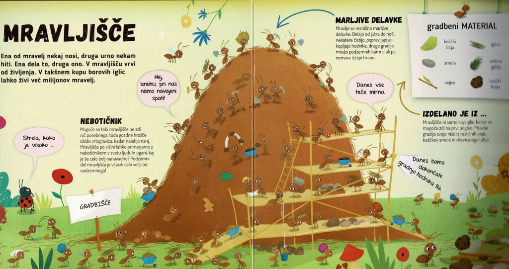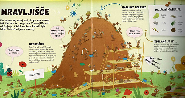 Spomladi ležiš vrh mravljinčjega hriba, si greješ telo, potem pa ti ogrevaš kamrice in hodnike v notranjem delu mravljišča. Plezaš gor in dol po drevju, iščeš hrano, včasih ujameš listno uš. Ti in tvoje prijateljice mravlje se rade posladkate z njihovimi izločki. Ampak dovolj klepeta. Veš kaj? Počuti se kot doma in si pojdi z nami ogledat mravljišče …