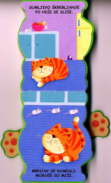Knjiga Muc Mrnjav je ena izmed štirih kartonk, ki sestavljajo čudovito in nenavadno serijo Knjiga, ki miga. Serija je namenjena otrokom starim do treh let in je nadvse nenavadna, tako po izdelavi kakor tudi po vsebini. Mojstrski prevod Jane Kolarič, pesnice in prevajalke, dá knjižicam še posebno iskrico. Knjižicam kartonkam z barvanim robom, čudovitih živih barv, ki se odpirajo navzgor, dajo še poseben čar šapice, tačke in peruti na zadnji strani, ki migajo gor in dol. Knjiga, ki miga je čudovita serija knjige in igračke, ki bo zagotovo zaživela prav v vseh otroških ročicah.Kartonka, 12 x 10 cm, 10 strani.