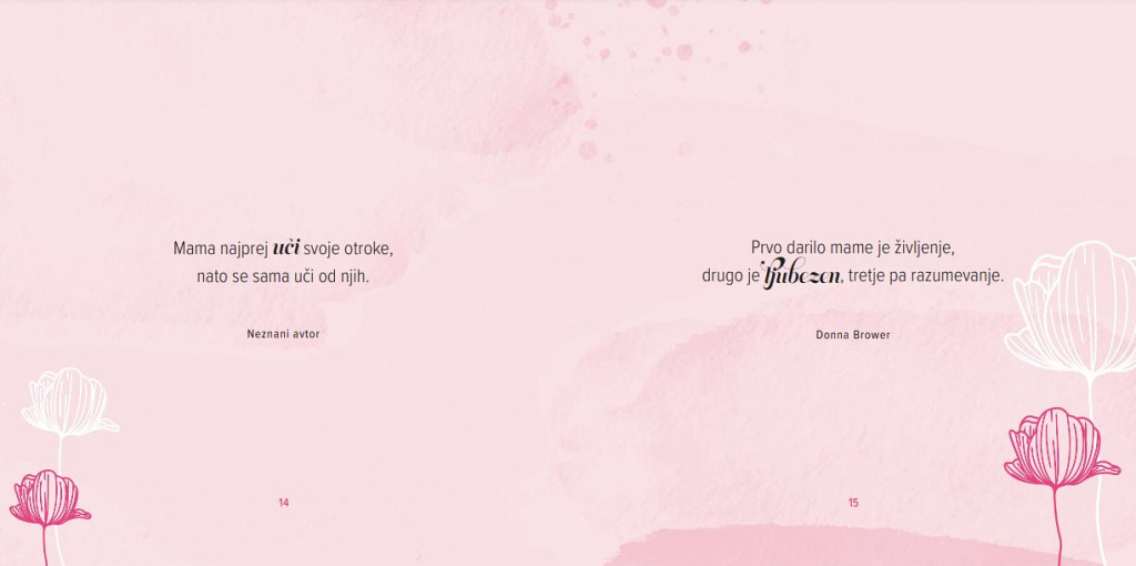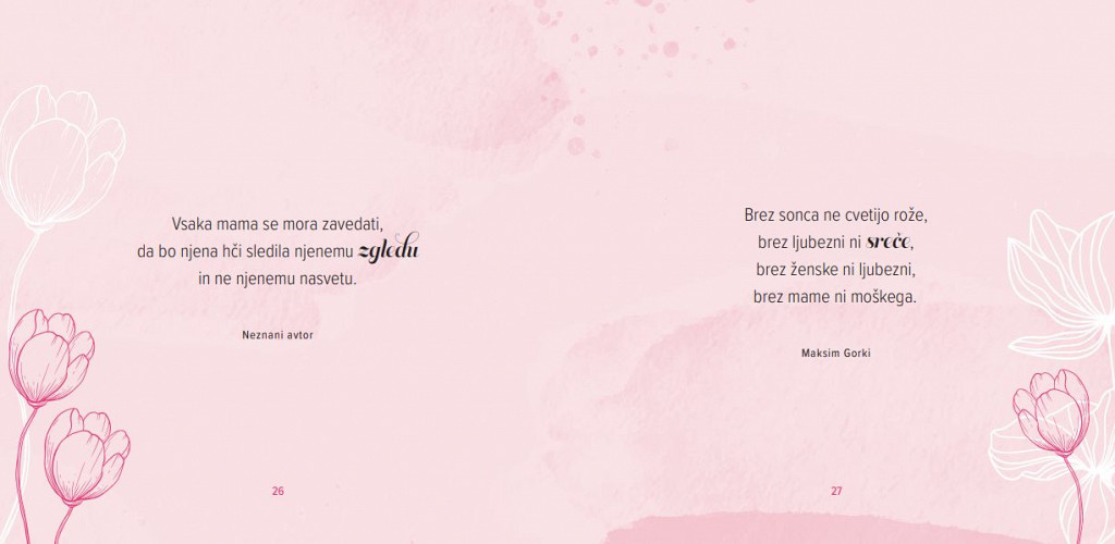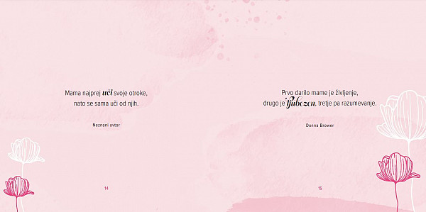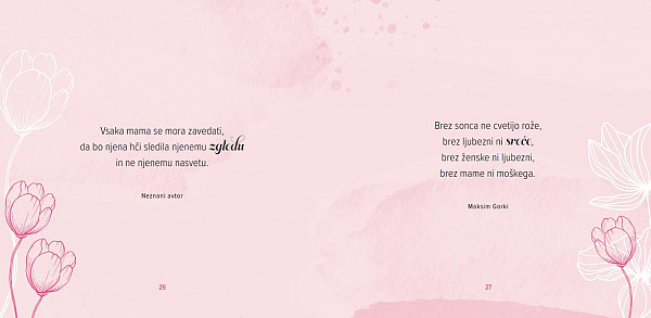 Unikatna darilna knjižica manjšega formata prinaša izbor misli in drobnih radosti različnih avtorjev o materah.
