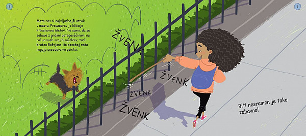 Meta se zabava z grdimi potegavščinami na račun vseh svojih sošolcev, tudi bratca Boštjana. Rada nagaja tudi sosedovemu psičku. Pravzaprav jo kličejo »Nesramna Meta«. Nekega dne pa se je svet, kot ga je Meta poznala, povsem spremenil. Preberite več