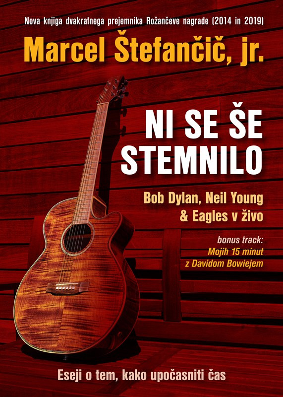MARCEL ŠTEFANČIČ, jr., (1960), je magister filozofije, filmski kritik, urednik in publicist. Do sedaj je napisal že preko osemdeset knjig, ki so se s svojo tematiko raztezale od teorije in zgodovine slovenskega ter svetovnega filma, do angažiranih esejističnih knjig, v katerih se je ukvarjal z družbeno problematiko po svetu in pri nas. Za svoje delo je dvakrat prejel Rožančevo nagrado za najboljšo esejistično knjigo (leta 2014 za Kdor prej umre, bo dlje mrtev in leta 2019 za Ivan Cankar: Eseji o največjem). V Ni se še stemnilo, svoji morda najbolj osebni esejistični knjigi doslej, je povezal svojo mladost in sedanjost, ter pokazal, da so rock glasba in nekateri njeni najbolj reprezentativni predstavniki, kot so Bob Dylan, Neil Young in skupina The Eagles, ki jih že dolgo posluša in spremlja v živo, večni ne samo metaforično, temveč tudi v resnici!