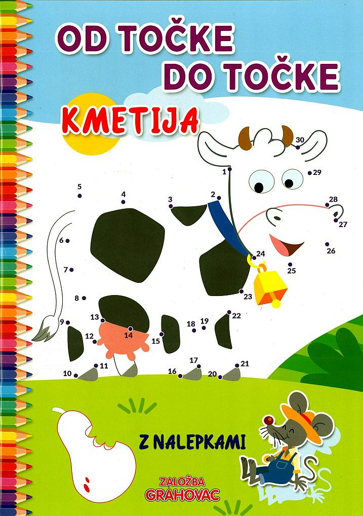 - Povezuj točke.- Pobarvaj tako nastale risbe in vse nepobarvane podrobnosti.- Prilepi nalepke na modre sence, da dokončaš svoje delo.Mehka vezava, velikost: 29,6 x 21 cm, 24 strani + 2 strani nalepk.