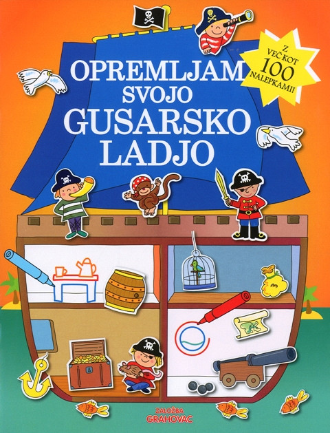 Ustvarjalna knjiga z več kot 100 nalepkami, ki spodbuja domišljijo vašega otroka. Naj vstopi na svojo gusarsko ladjo in jo opremi po svojem okusu. Pri tem si lahko pomaga z nalepkami, ali pa nariše okna, vrata in opremo kabin, razne predmete in gusarje.Mehka vezava, 21,5 x 28 cm, 21 strani.