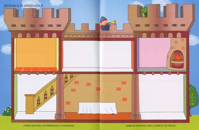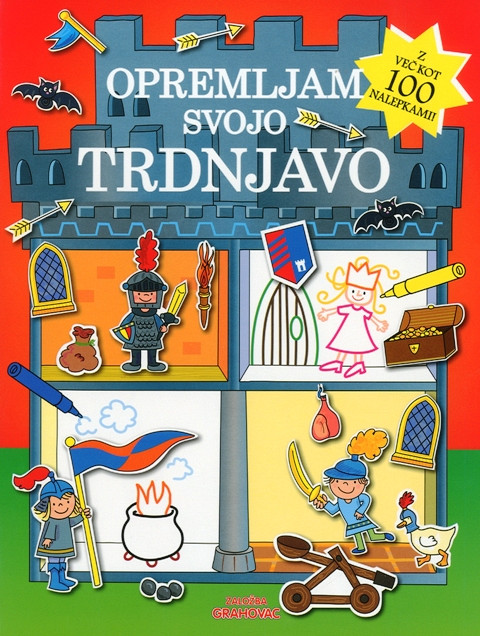 Ustvarjalna knjiga z več kot 100 nalepkami, ki spodbuja domišljijo vašega otroka. Naj vstopi v svojo trdnjavo in jo opremi po svojem okusu. Pri tem si lahko pomaga z nalepkami, ali pa nariše pohištvo, okna, vrata in druge stvari, pobarva stene in prostore poseli z vitezi.Mehka vezava, 21,5 x 28 cm, 21 strani.