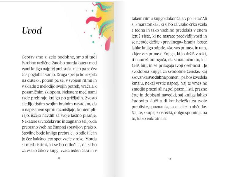 Z izbranimi osrečki bomo v tej knjigi – malo za šalo in veliko zares! – obdelovali bremena tistih občutkov dolžnosti, zaradi katerih imaš nekje v svoji globini, nekje v ozadju popka občutek, da ne smeš biti to, kar SI. Kar SI v svojem bistvu. Kar SI v svoji enkratnosti. Tvoje bistvo, tvoja esenca želi in hoče ven na plano. Naj ti pri tem pomaga naša Abeceda dolgov. Kajti, če se želiš samouresničiti kot svodobna ženska (sodobna in svobodna hkrati), je pametno najprej odvreči vsa bremena občutkov dolžnosti, da moraš biti nekaj, kar nisi, in občutkov nezdrave krivde zato, ker si, kar si. Z jasnim pogledom resnice boš lahko vse svoje speče potenciale iz pristne nature spremenila v svoje lastne zmogljivosti, ki ti bodo pomagale postati še bolj svodobna.