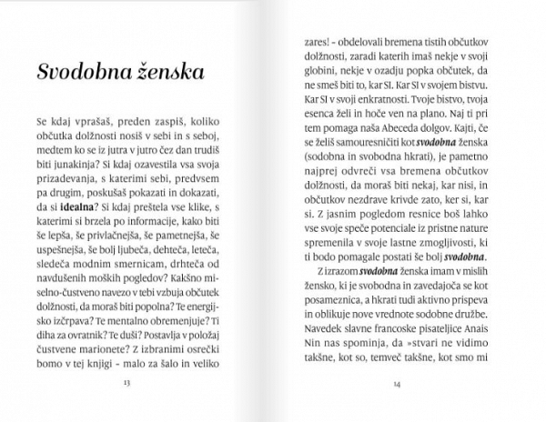 Z izrazom svodobna ženska ima Silvija v mislih žensko, ki je svobodna in zavedajoča se kot posameznica, a hkrati tudi aktivno prispeva in oblikuje nove vrednote sodobne družbe. Že od malih nog do današnjih dni lahko kot posameznica izkušaš na svoji lastni koži, kako težko se je bojevati proti tem mlinom na veter, zgrajenim iz številnih stereotipov, zakoreninjenih prepričanj, splošnih mnenj, oguljenih smernic, zabetoniranih fraz, razprostranjenih floskul. Pogosto podvomiš o svoji pameti. Pogosto sploh nisi prepričana, da veš, kaj je res in kaj ni.