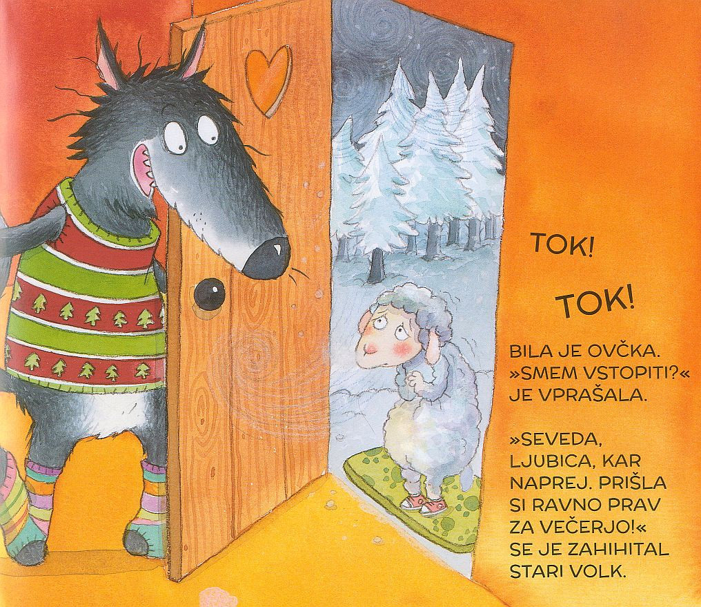 Ko starega volka nepričakovano obišče mala ovčka, začne razmišljati, kako bo pripravil okusno ovčjo obaro. A ovčka noče biti volkova večerja, ampak njegova prijateljica….Trda vezava, 27 x 22,5 cm, 24 strani.