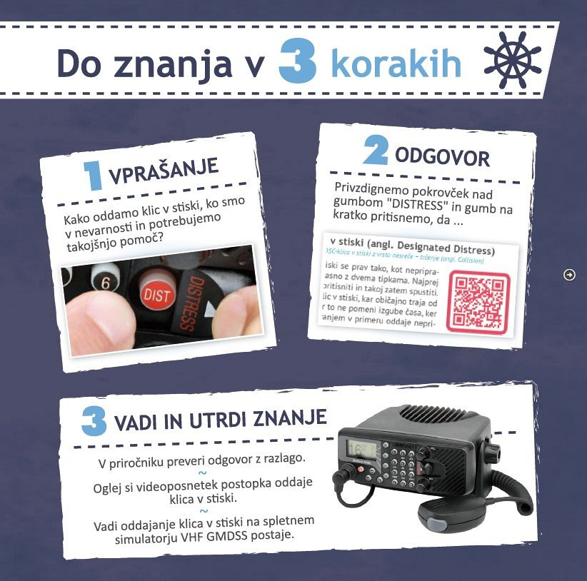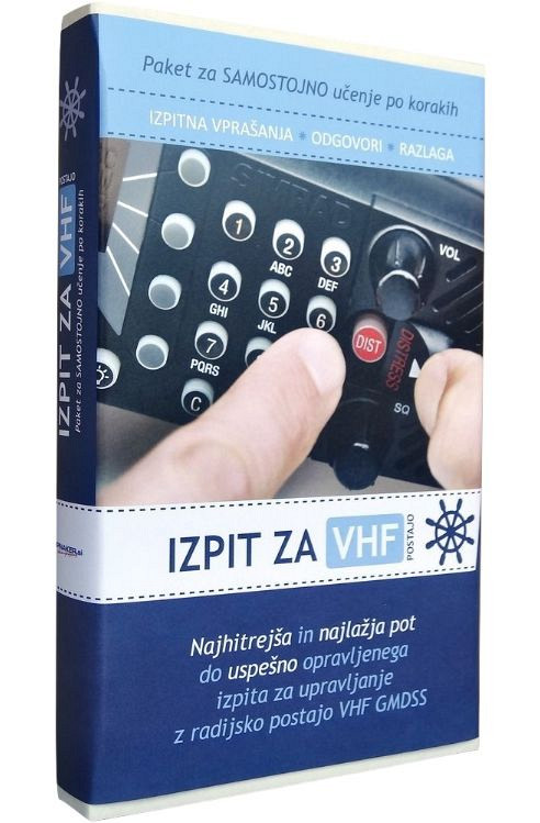 Najhitrejša in najlažja pot do uspešno opravljenega izpita za upravljanje z radijsko postajo VHF GMDSS!Paket za samostojno učenje po korakih vsebuje:- knjigo “Priprava na izpite za čoln – Vprašanja z odgovori”,- knjigo “Priročnik za upravljanje z radijsko postajo VHF GMDSS” z vključenimi videovsebinami,- kodo za dostop do VHF GMDSS simulatorja,- obrazce in navodila za prijavo na izpit za VHF GMDSS. Preberite več