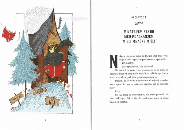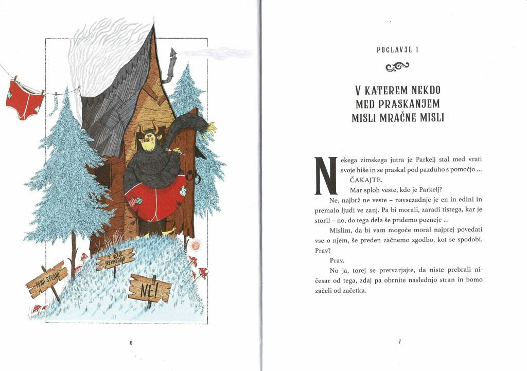 Ste že slišali za Parklja? Pa za njegove podle, grozovite božične nakane? Pa za grozodejstvo, ki se je pripetilo na božični večer? Morda bi vam moral pripovedovati o tem … Kakopak se v resnici začne s škripanjem in pokljanjem in krušenjem, pa z velikim tresenjem in drhtenjem … Toda o tem vam bom več povedal pozneje.
