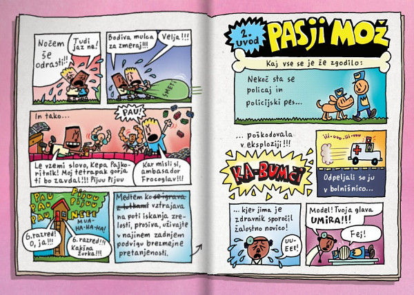 Serija Pasji mož Dava Pilkeyja v odličnem prevodu Boštjana Gorenca – Pižame navdušuje bralce vseh starosti. Govori o univerzalnih pozitivnih temah, kot so empatija, prijaznost, vztrajnost in pomembnost zvestobe samemu sebi.,