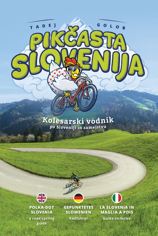 SLOVENŠČINA: Kolesarski vodnik Pikčasta Slovenija prinaša 66 etap po Sloveniji, ki vas bodo popeljale v vse njene regije, v skrite kotičke z vrhunskimi razgledi in na najvišje, s kolesom dostopne vrhove, ki jih premore ta majhna dežela. Kolesarski vodnik je zasnovan za vsakogar, ki ima rad izzive, saj vsaka od etap presega 1000 višinskih metrov vzpona, kar je bila tudi avtorjeva osnova ideja. Vodnik vsebuje zemljevide z vrisano traso, opis poti, težavnost od 1 do 5 in QR kodo, s katero lahko traso naložite na svoj Garmin števec.