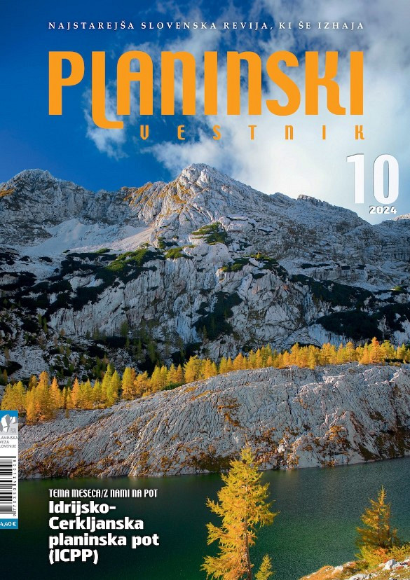 Tema oktobrske številke Planinskega vestnika, ki ga na naslovnici krasijo zlati macesni z Ledvičko v dolini Triglavskih jezer, je Idrijsko-Cerkljanska planinska pot v devetih etapah. Zakaj je dobila ta najbolj nakodrana vezna pot svoje mesto v Planinskem vestniku, kaj vse je na njej doživel naš odgovorni urednik Vladimir Habjan in kako jo vidi intervjuvanka Anka Rudolf, ki je poskrbela v PD Idrija za izid novega vodnika po tej poti, boste izvedeli v tem Vestniku.