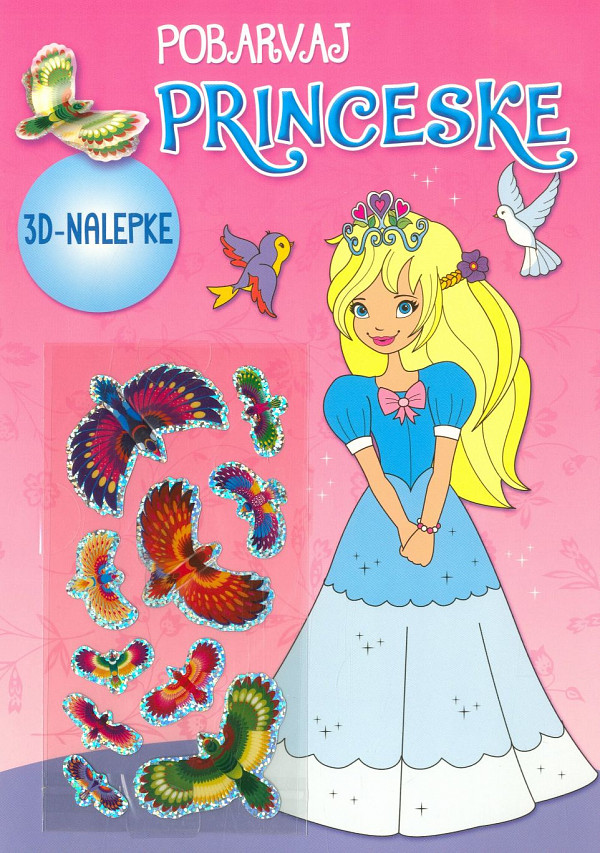 Pobarvaj princeske, pobarvanka in 3D-nalepke.Mehka vezava, 21 x 29,5 cm, 18 strani