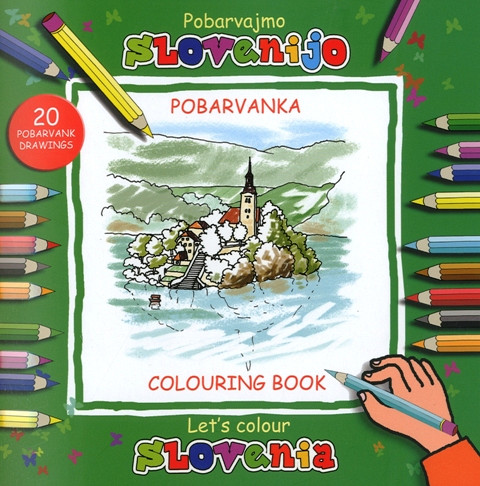 Knjižica vsebuje 20 pobarvank s slovenskimi motivi. Otroci bodo lahko uživali ob barvanju Portoroža, Triglavskega narodnega parka, Prešernovega spomenika, Predjamskega gradu, reke Soče, Blejskega jezera,...Mehka vezava, 21 x 21 cm, 20 strani.