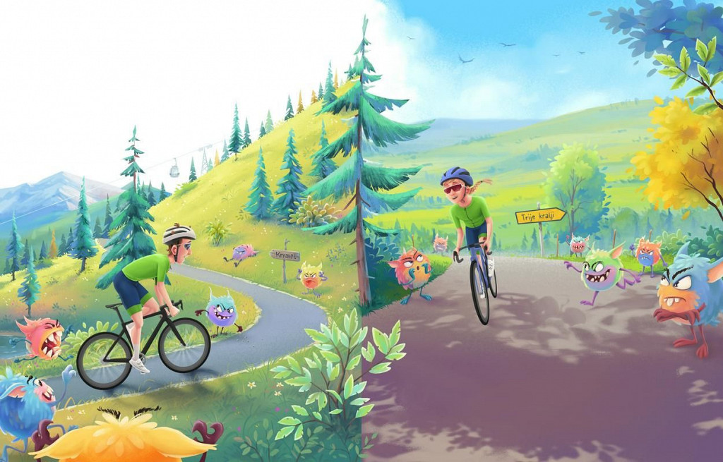 »To je najina kolesarska pravljica. Z resničnimi in pravljičnimi junaki. Če verjameš v škrate, zmaje in velikane, ti zagotovo pomagajo skozi prenekatero preizkušnjo. Če verjameš vase, pa te odpeljejo vse do tvojih sanj. Kako? Na kolesu, vendar!«