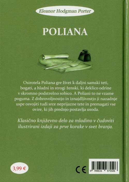 Osirotela Poliana gre živet k daljni samski teti, bogati, a hladni in strogi ženski, ki deklico odrine v skromno podstrešno sobico. A Poliani to ne vzame poguma.Z dobrovoljnostjo in iznajdljivostjo ji nazadnje uspe osvojiti tudi srce neprijazne tete in premagati vse ovire, ki jih prednjo postavlja usoda. Preberite več