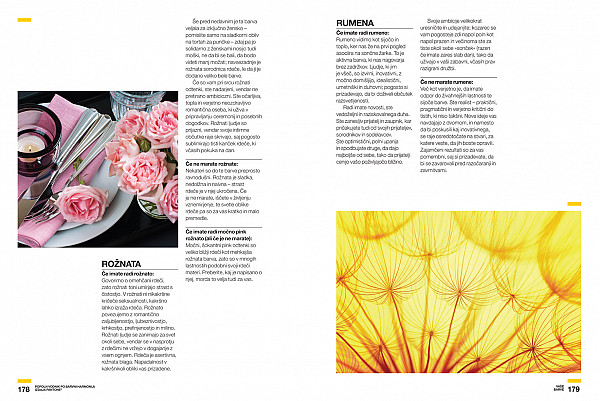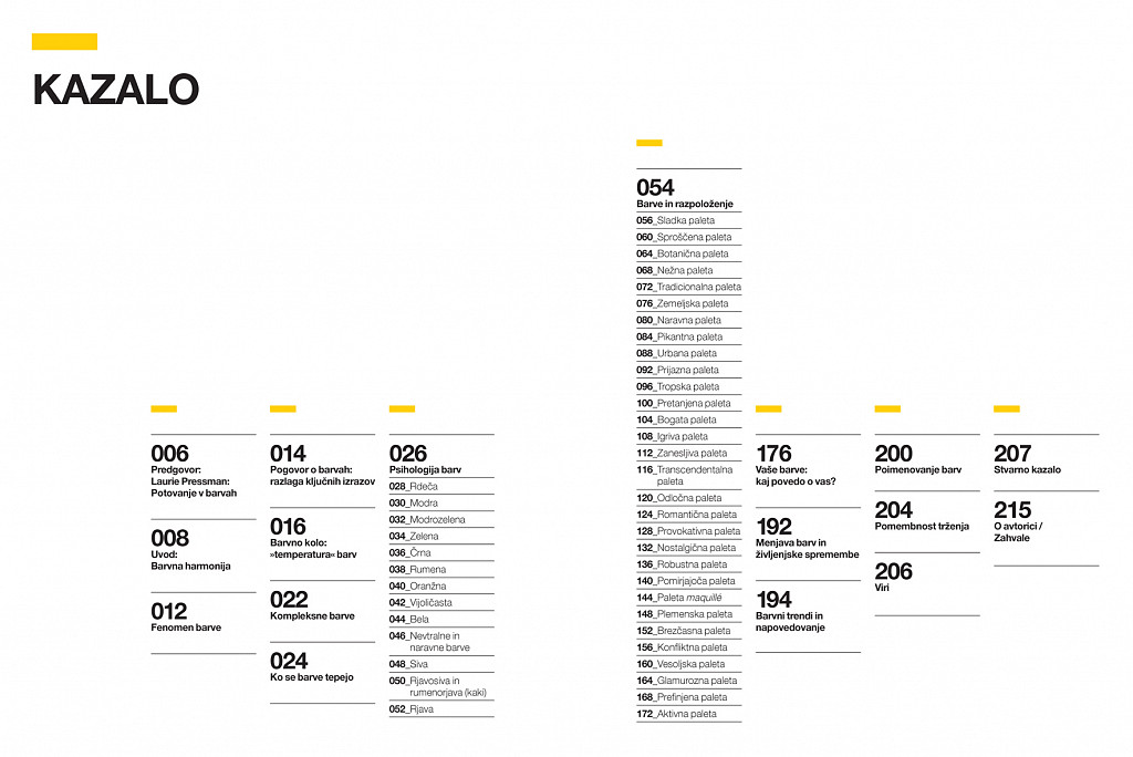 Njeno besedilo je polno informacij in bogato z navdihi, sama je izbrala tudi nove fotografije, poleg tega pa se knjiga ponaša s povsem svežo vizualno podobo. In ne samo to: avtorica je vsako od tridesetih izbranih barvnih palet – od aktivne do zemeljske, od odločne do urbane – ilustrirala s 36 kombinacijami Pantonovih barv, tako da so vplivnost, pestrost in neomejene možnosti izbire barv postale oblikovalcem bolj dostopne in uporabne kot kadarkoli prej.
