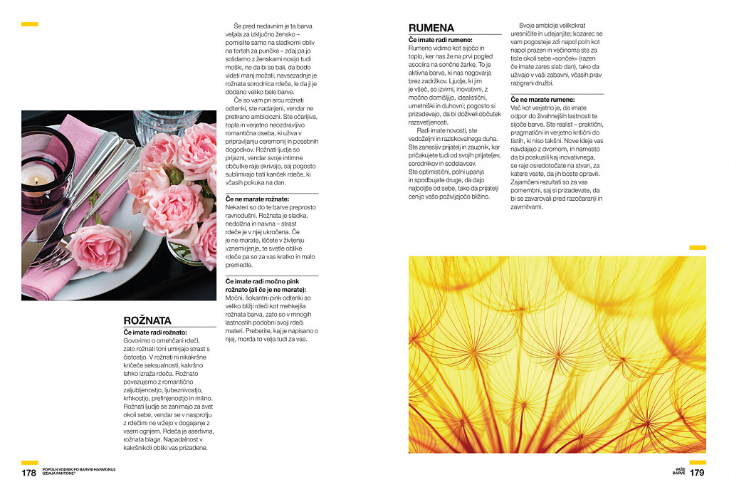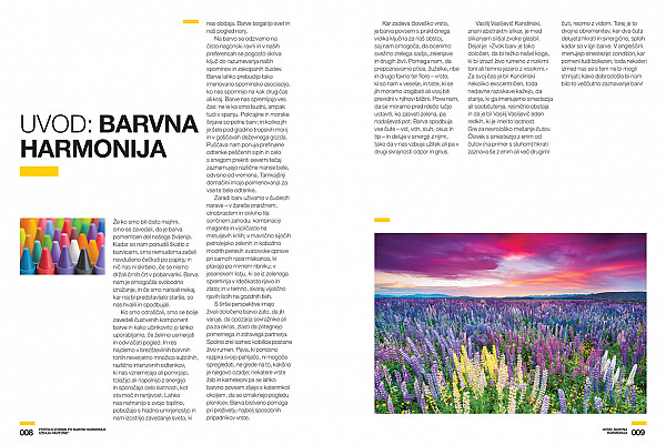 Leatrice Eiseman, med drugim vodja skupine, ki izbira Pantonovo barvo leta, je knjigo dopolnila tudi s poglavji o barvnih trendih in napovedih, o tem, kaj naše najljubše – in najmanj priljubljene – barve povedo o nas, o sporočanju z barvami, njihovih pravilnih sorazmerjih in posebnih učinkih. S premišljeno izbiro barv lahko ustvarimo želeno razpoloženje v bivalnih in delovnih prostorih, pri izdelkih in na trgu. Kako z barvami pričaramo najrazličnejše razpoloženjske odtenke, pa je tudi osrednja tema te knjige.