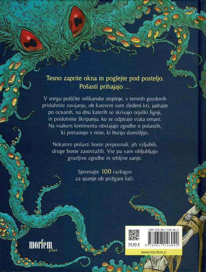 V snegu poiščite velikanske stopinje, v temnih gozdovih prisluhnite zavijanju, ob katerem vam zledeni kri, jadrajte po oceanih, na dnu katerih se skrivajo orjaški lignji, in prisluhnite škripanju, ko se odpirajo vrata omare. Na vsakem kontinentu obstajajo zgodbe o pošastih, ki prerastejo v mite, ki burijo domišljijo.