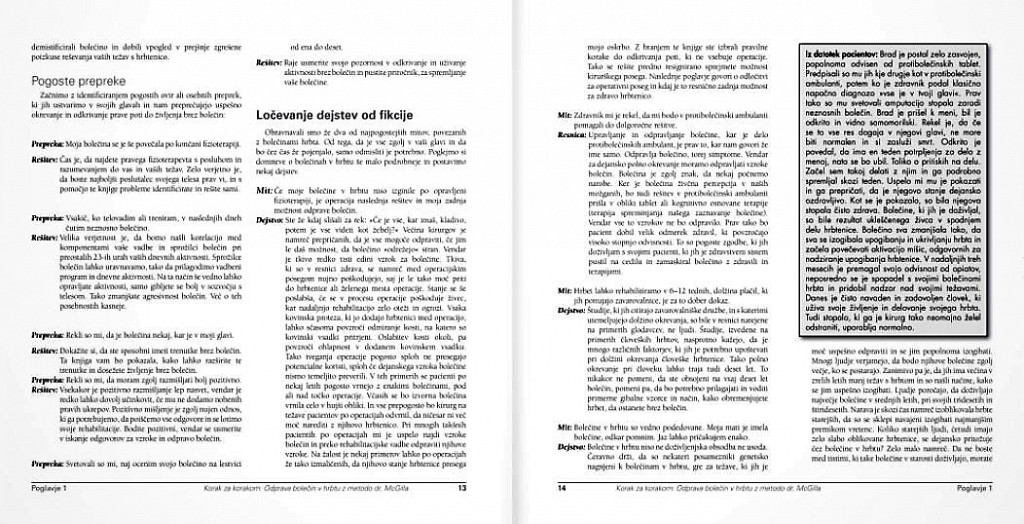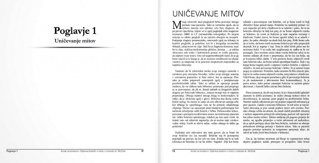 Zares velika čast je, da ima slovenski bralec možnost brati knjigo najbolj cenjenega strokovnjaka za hrbtenico na svetu v maternem jeziku. McGillovo metodo najbolj odlikuje prav ekletičnost in širina razumevanja mehanizmov poškodb hrbtenice. S to knjigo se boste naučili poslušati in razumeti svoje telo, in s tem tudi prilagoditi vaje in vse svoje aktivnosti. Izvedeli boste, da težave v hrbtenici vedno imajo vzrok, in da ga je potrebno poiskati in ustrezno odpraviti.