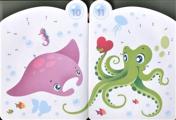 Nalepi številke od 1 do 16 na vrh vsake strani. Poveži številke od 1 do 10, nato pobarvaj sliko, ki se prikaže. Zabavaj se z lepljenjem nalepk na modre oblike. Preberite več