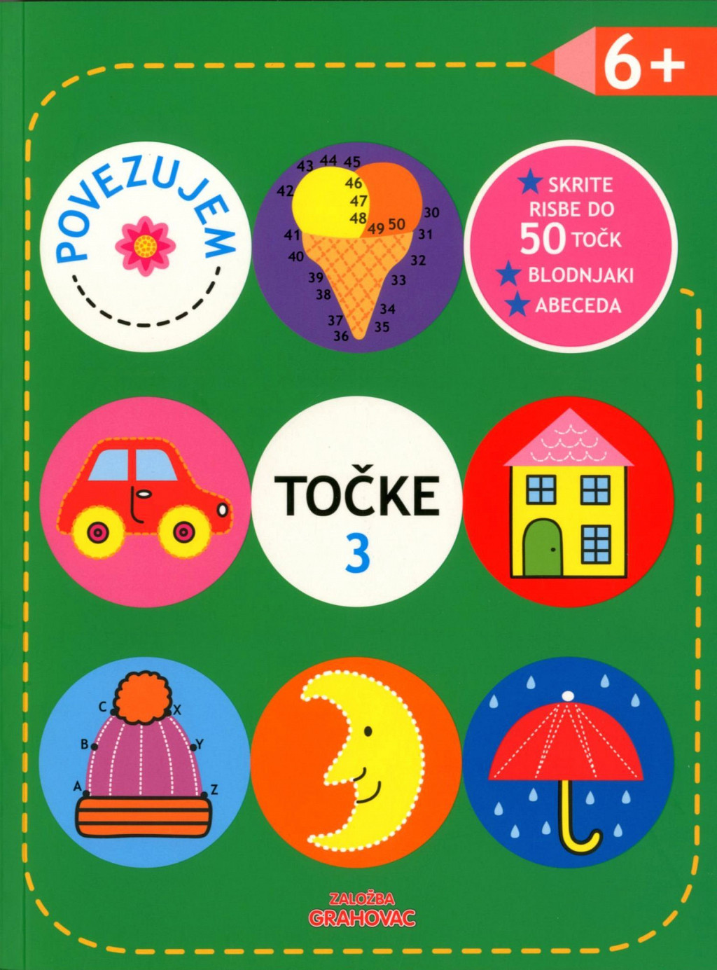 Skrite risbe do 50 točk, blodnjaki in abeceda! Ali poznaš vse črke abecede? Ali znaš šteti od 1 do 50? S povezovanjem točk dokončaj vse risbe v knjigi. Išči poti skozi blodnjake.Pričakujte veliko zabave!Mehka vezava, 21,00 x 29,00 cm, 64 strani.